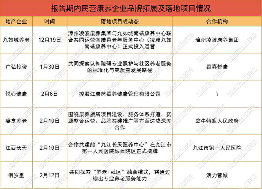 广弘投资与嘉喜悦康达成合作,共同探索认知障碍专业照护与社区养老服务的标准化路径,聚焦认知症照护这一细分刚需场景,提升专业服务能力。悦心健康通过控股江康芮嘉养健康管理有限公司,进一步拓展区域康养服务网络,实现资源整合与品牌下沉。