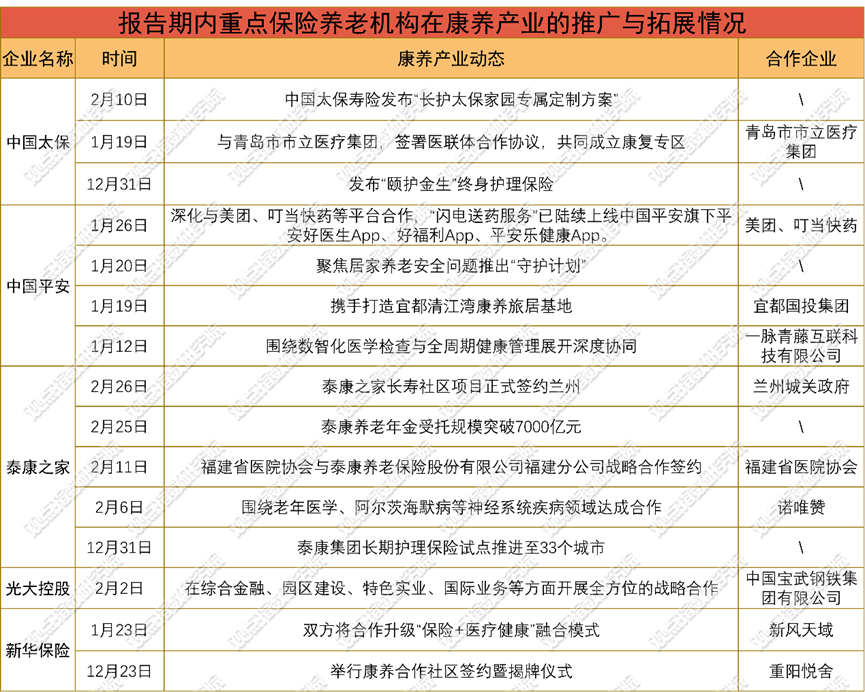 险资机构凭借长期稳定的资金优势与健康保障属性,成为康养产业布局的核心力量,核心布局方向聚焦医养结合与多元场景延伸,通过差异化模式构建竞争壁垒。中国太保在青岛社区与当地市立医院共建康复专区,依托三甲医院专家资源与绿色转诊通道,打造预防、康复、诊疗一体化体系;泰康加速医养配套建设,并与诺唯赞合作布局阿尔茨海默病早期筛查,实现“未病先防”;中国平安聚焦医疗科技赋能,与华为擎云合作推出穿戴设备主动健康预警,联合一脉青藤推进AI辅助诊疗,携手美团、叮当快药优化即时送药服务,构建“健康+保险+医药”闭环。